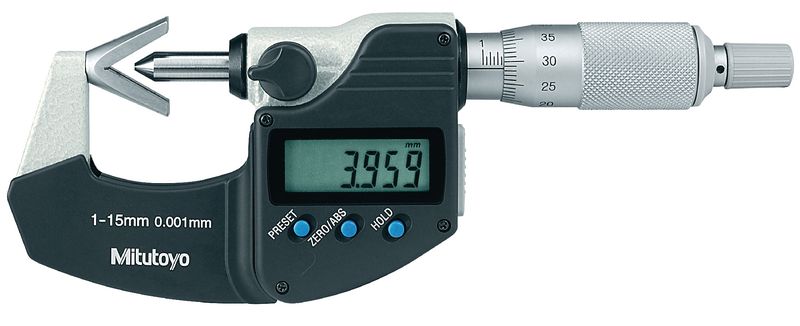 60° zum Messen von 3-schneidigen Werkzeugen z.B. Gewindebohrer, Fräser, Reibahlen. Skalentrommel und Skalenhülse mattverchromt.