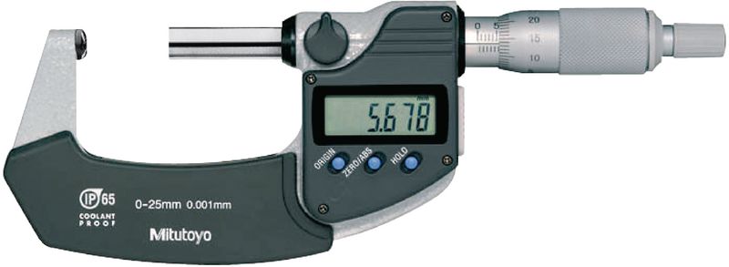 mit sphärischen Messflächen. Skalentrommel und Skalenhülse mattverchromt. Messflächen hartmetallbestückt, geschliffen und feinstgeläppt.