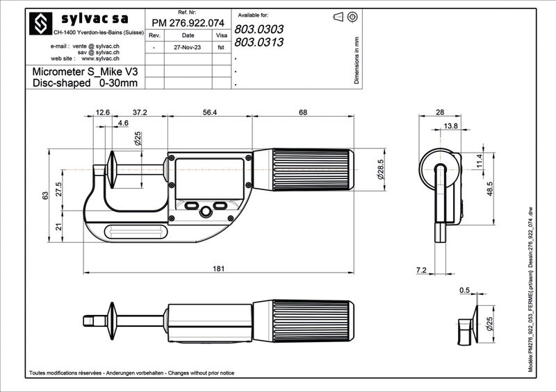 SwissMade - Garantie 2 JahreNichtdrehende Messspindel mit Spindelschnellverstellung. Tellermessflächen Ø 25 mm.