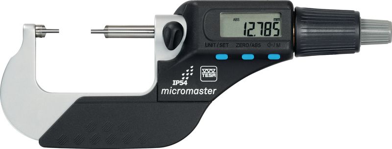 MICROMASTER - Bügelmessschraube mit kleinen Messflächen für Messungen an Einstichen, Passfedernuten, Keilwellen usw. Mit integrierter Friktionskupplung in der Hülse und Hartmetallmessflächen.