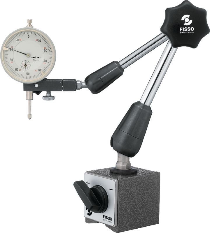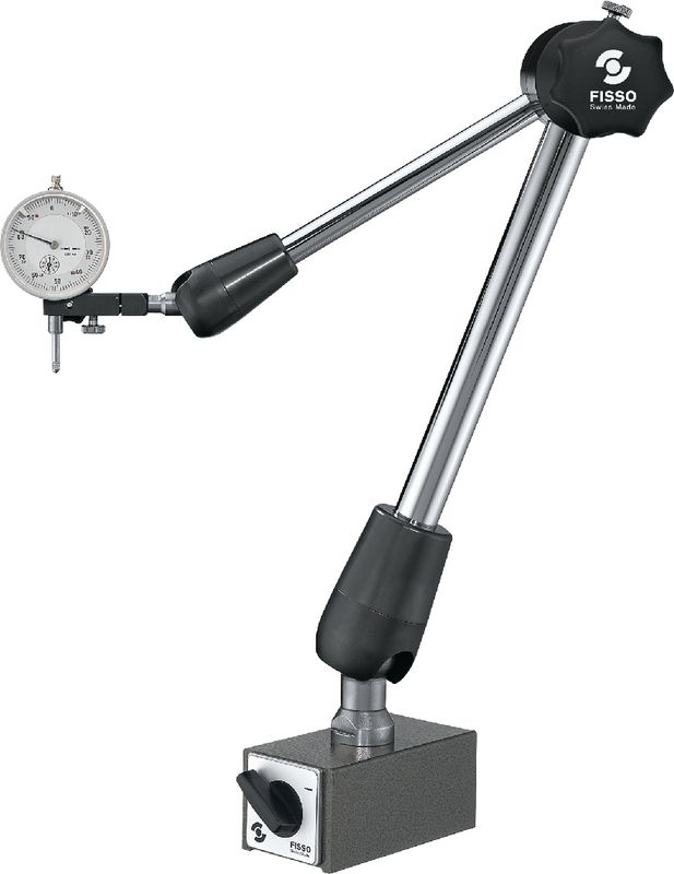mit Mikrofeineinstellung und verchromten Armteilen für Messtaster, Messuhren und Fühlhebelmessgeräte. Kräftiger Schaltmagnet mit Prismasohle, ein- und ausschaltbar über Drehgriff. Die Gelenkstative sind in verschiedenen Grössen lieferbar.