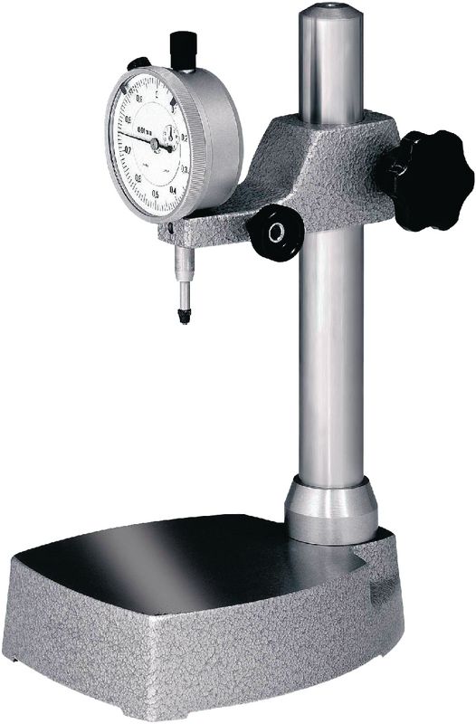 Einfacher Messständer besonders geeignet als Grundelement zum Montieren spezieller Werkstücksaufnahmen für Serienprüfungen. Gussfuss mit geschliffener Messtischfläche, Säule verchromt und demontierbar.