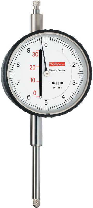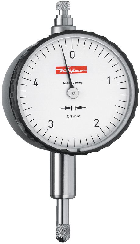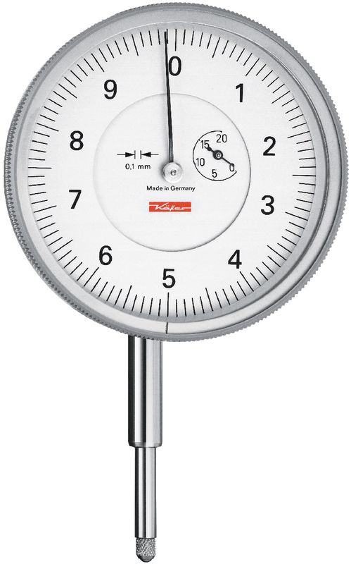 Für Grossapparatebau, Schlossereibetriebe, Holzbearbeitung, usw. Drehbares Zifferblatt. Messbolzen und Einspannschaft aus nichtrostendem Stahl.