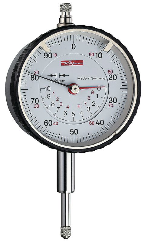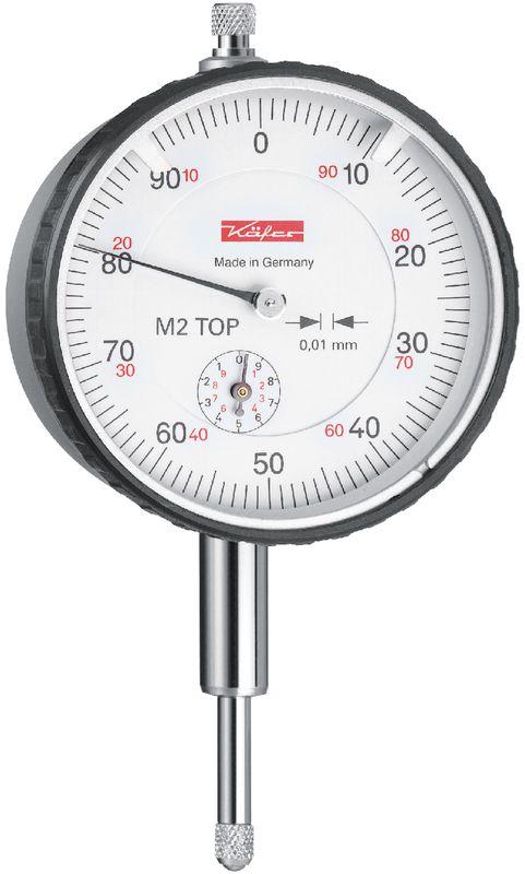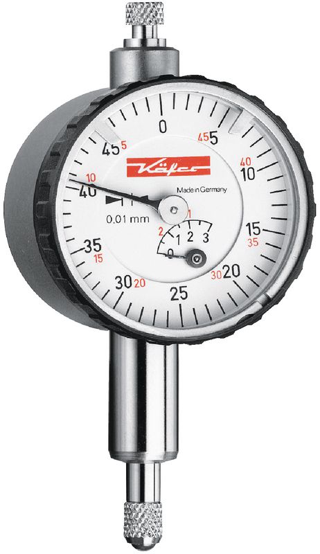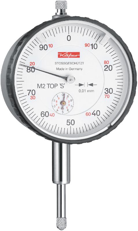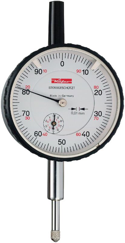 Drehbares Zifferblatt mit Toleranzmarken. Messbolzen und Einspannschaft aus nichtrostendem Stahl.