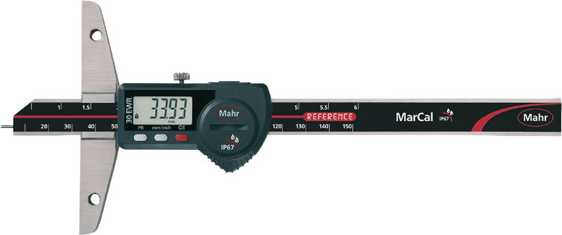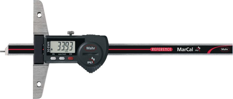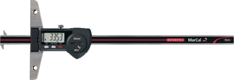 Universeller Tiefenmessschieber mit geläppten Führungsbahnen. Schieber und Schiene aus rostfreiem, gehärtetem Stahl. Gut ablesbare, kontraststarke LCD-Anzeige. REFERENCE-System mit LOCK-Funktion.